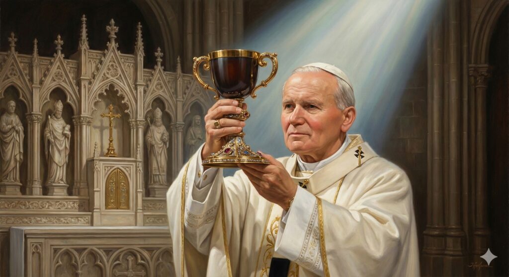 En tiempos contemporáneos, el cáliz es venerado como el auténtico Grial. El texto destaca que Juan Pablo II besó y celebró con el Santo Grial en Valencia, confirmando su estatus sagrado en la tradición actual.