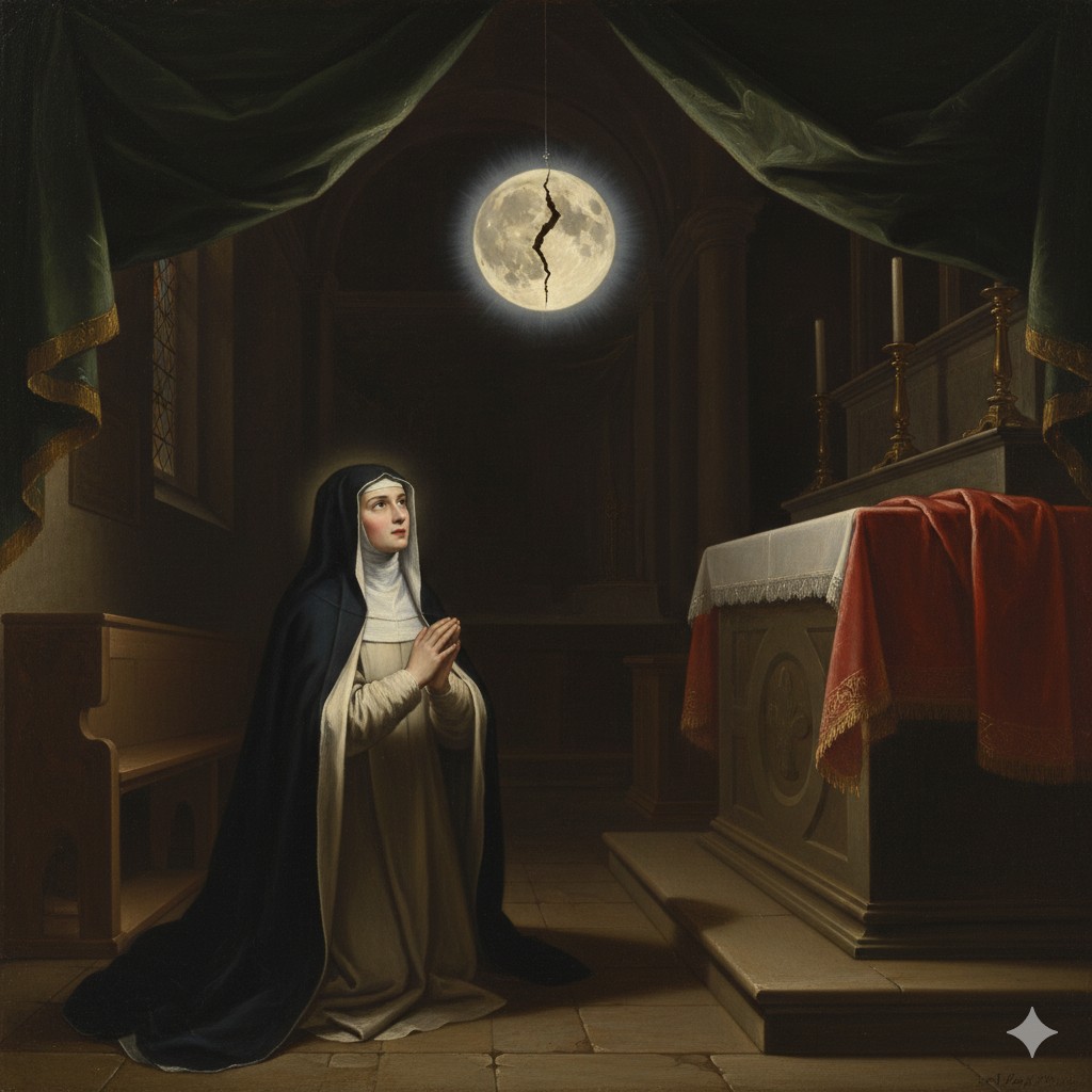Desde su adolescencia, Santa Giuliana de Liegi, una religiosa del monasterio de Mont Cornillon, tiene visiones místicas recurrentes. En estas visiones, observa una luna llena resplandeciente que, sin embargo, está visiblemente “resquebrajada” o atravesada por una grieta.