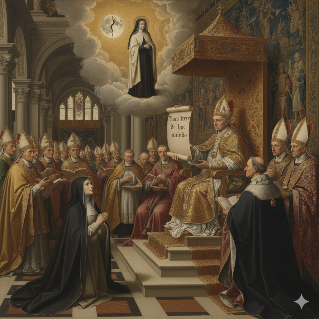 Posteriormente, tras la muerte de Santa Giuliana, el Papa Urbano IV extendió esta celebración a toda la Iglesia Universal mediante la bula Transiturus de hoc mundo el 11 de agosto de 1264.