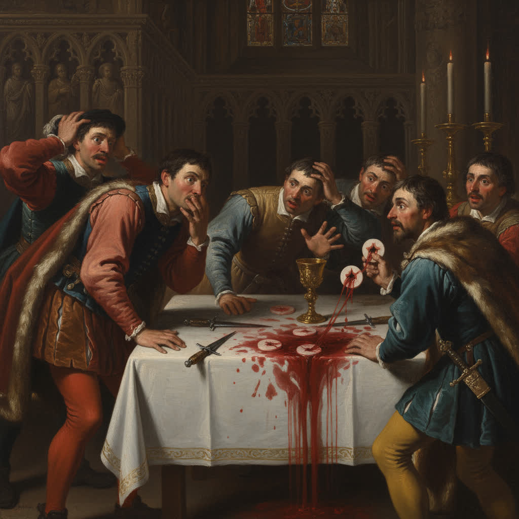 Después de que el mercader muriera y su viuda entregara las Hostias a amigos de su esposo, estos realizaron una ceremonia privada el Viernes Santo de 1370. En este acto de desprecio, apuñalaron las Hostias consagradas.