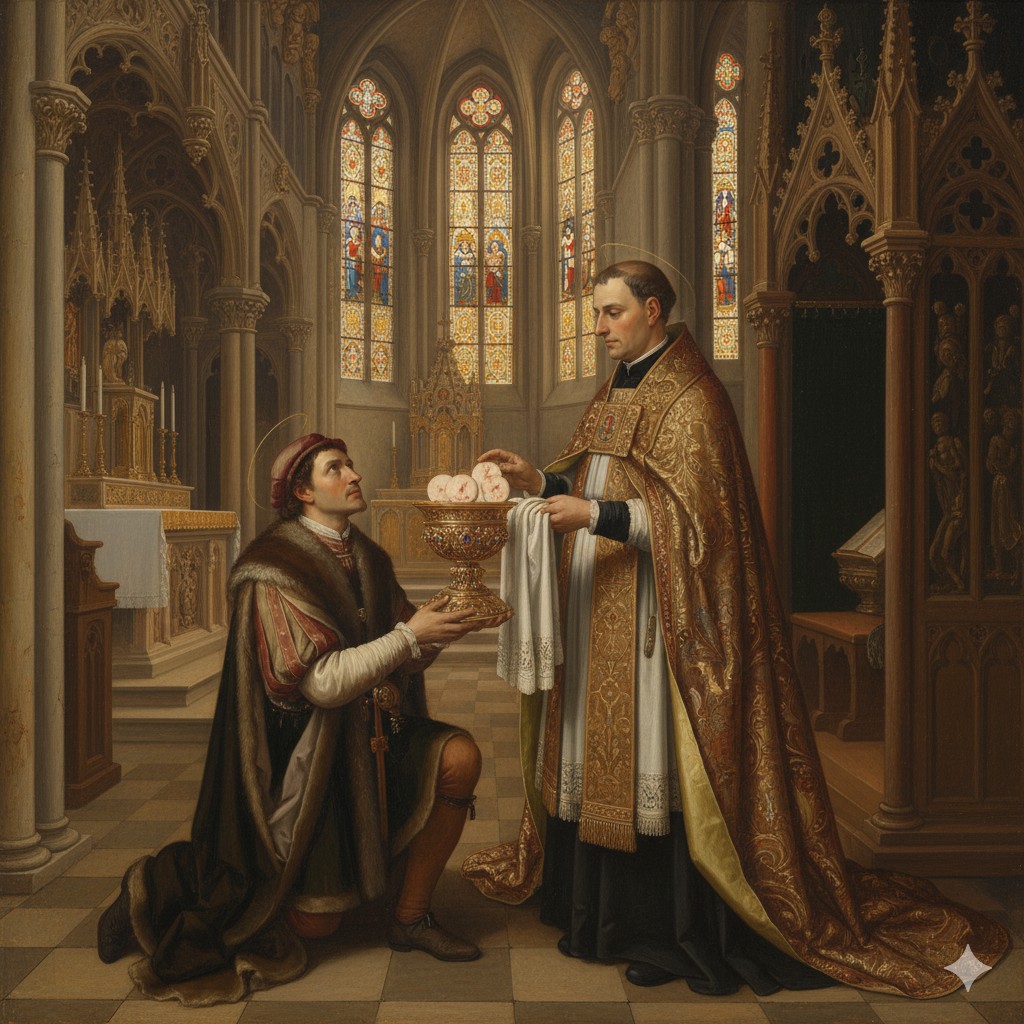 En el otoño de 1369, un rico mercader de Enghien, contrario a la fe católica, le encargó a un joven de Lovaina que robara varias Hostias consagradas.