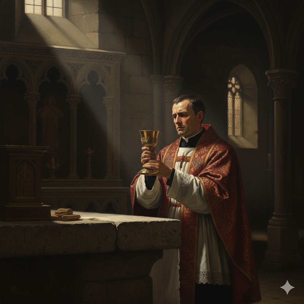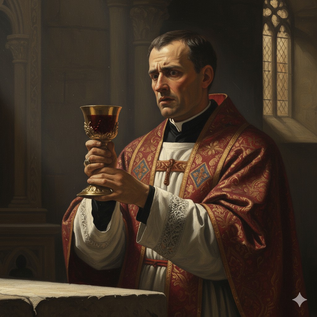 Inmediatamente después de que el sacerdote dudara, el vino contenido en el cáliz se transformó visiblemente en Sangre.