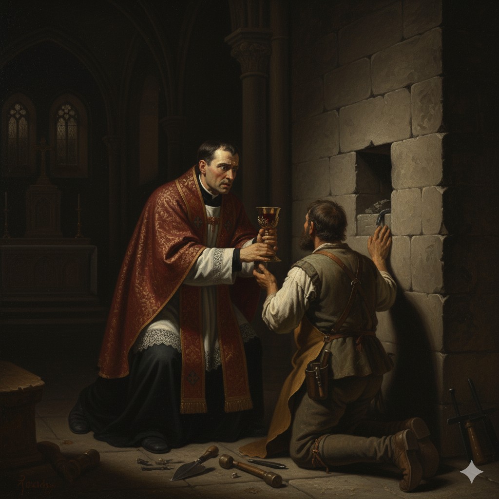 Lleno de confusión y miedo, el sacerdote decidió esconder la Reliquia. Mandó ocultar el cáliz con la Sangre detrás de un muro del altar principal. El albañil que realizó el trabajo fue obligado por el sacerdote a guardar silencio sobre el hecho.