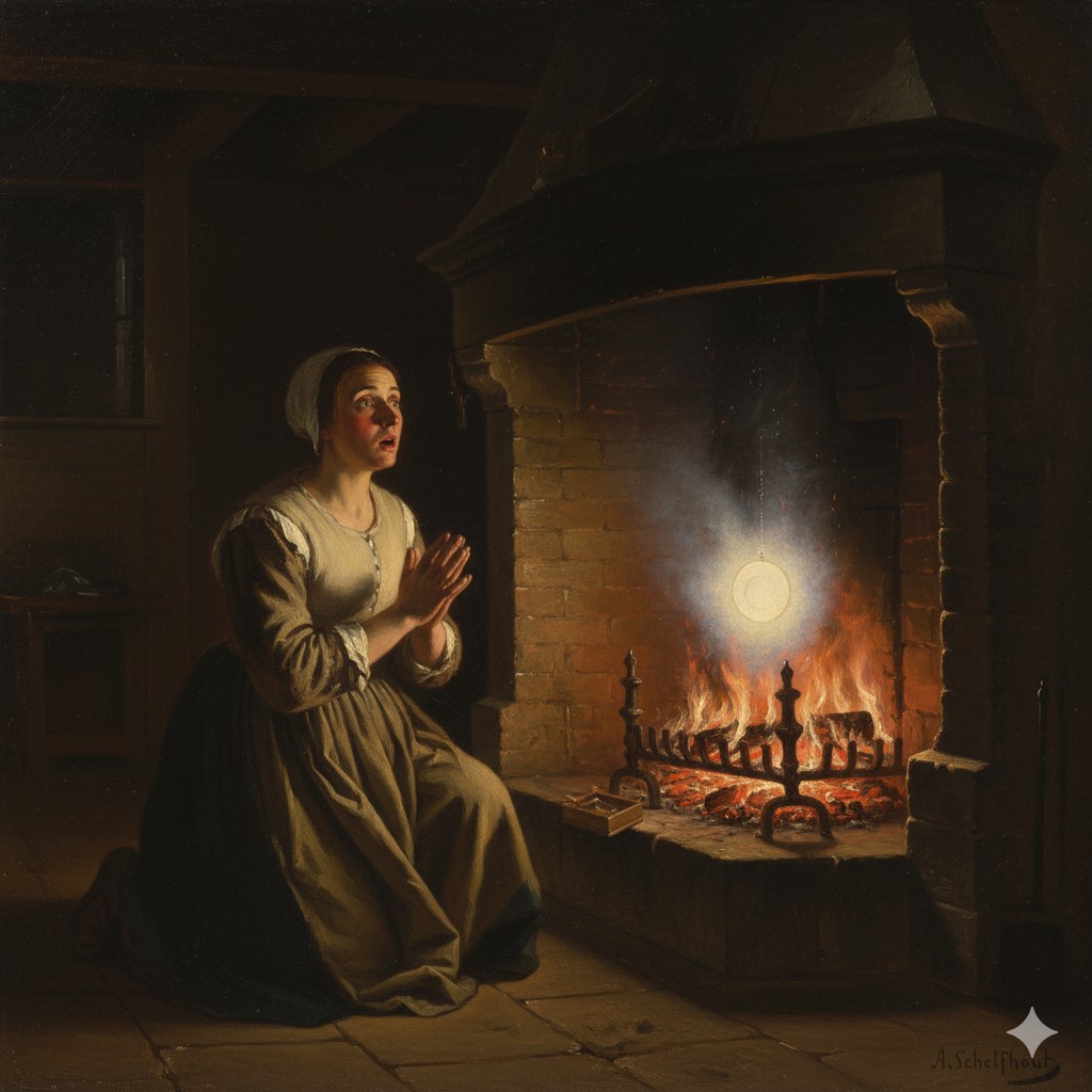 La doméstica arrojó inmediatamente el contenido de la vasija, incluyendo la Partícula Consagrada, al fuego de la chimenea. Al día siguiente, la Hostia fue encontrada intacta y suspendida dentro de la chimenea, irradiando una extraña luz.