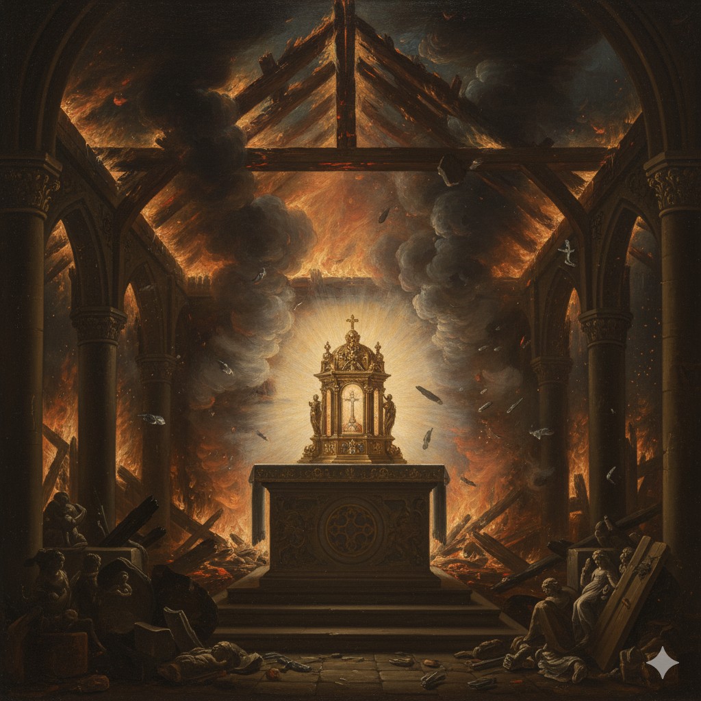 Años más tarde, en 1452, esta primera capilla sufrió un gran incendio, pero la Custodia que contenía la Sagrada Partícula permaneció extrañamente intacta. Aunque la Hostia original fue robada en el siglo XVII, el milagro se conmemora hasta hoy en Ámsterdam con la exposición permanente del Santísimo Sacramento y la famosa procesión silenciosa anual, conocida como Stille Omgang.