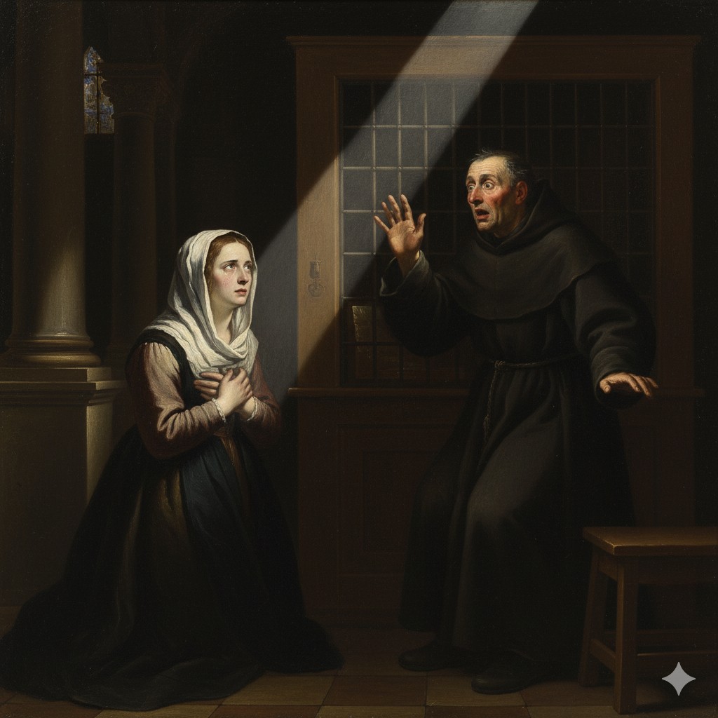 Cinco años después, en 1199, la mujer, atormentada por el remordimiento, le confiesa su acto al Padre Berthold, el superior del convento de Heilig Kreuz.