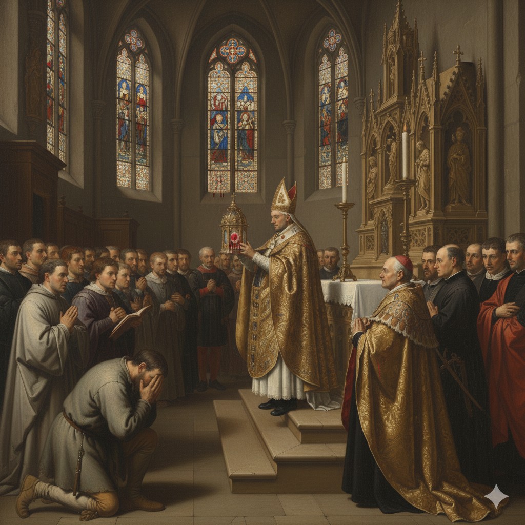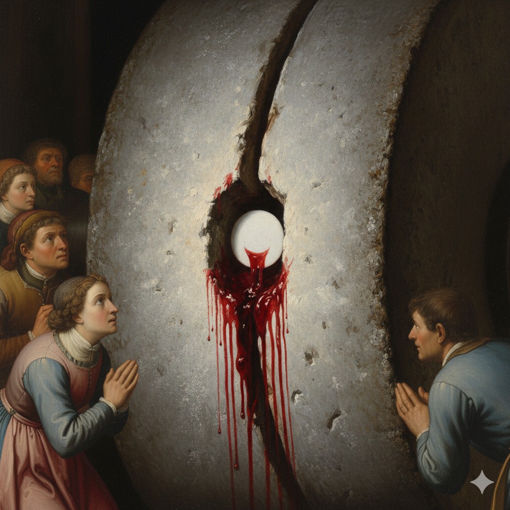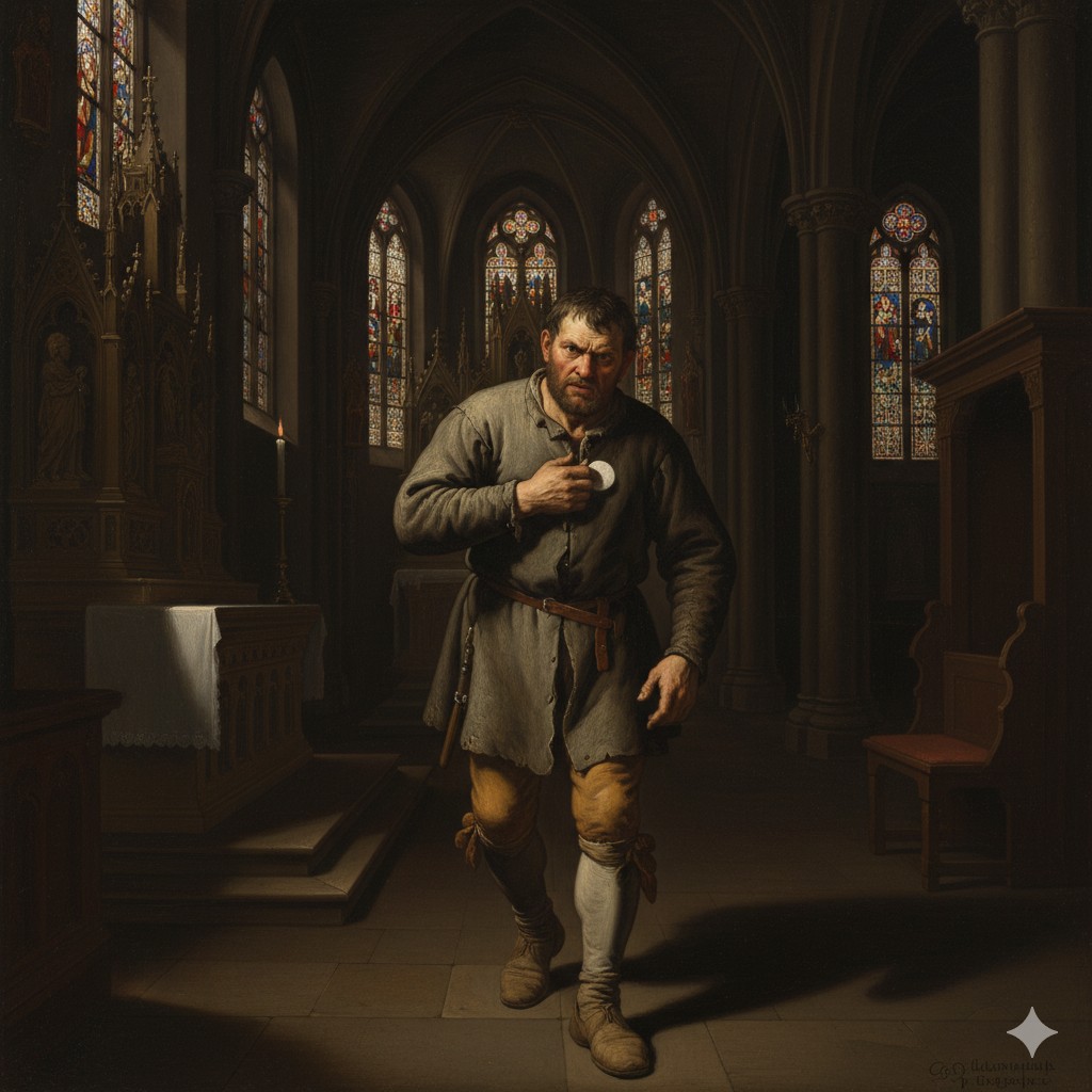 Un molinero, exasperado por constantes pleitos con un rival, decidió robar la Hostia que había recibido en la Comunión con la intención de usarla para calumniar a su vecino.