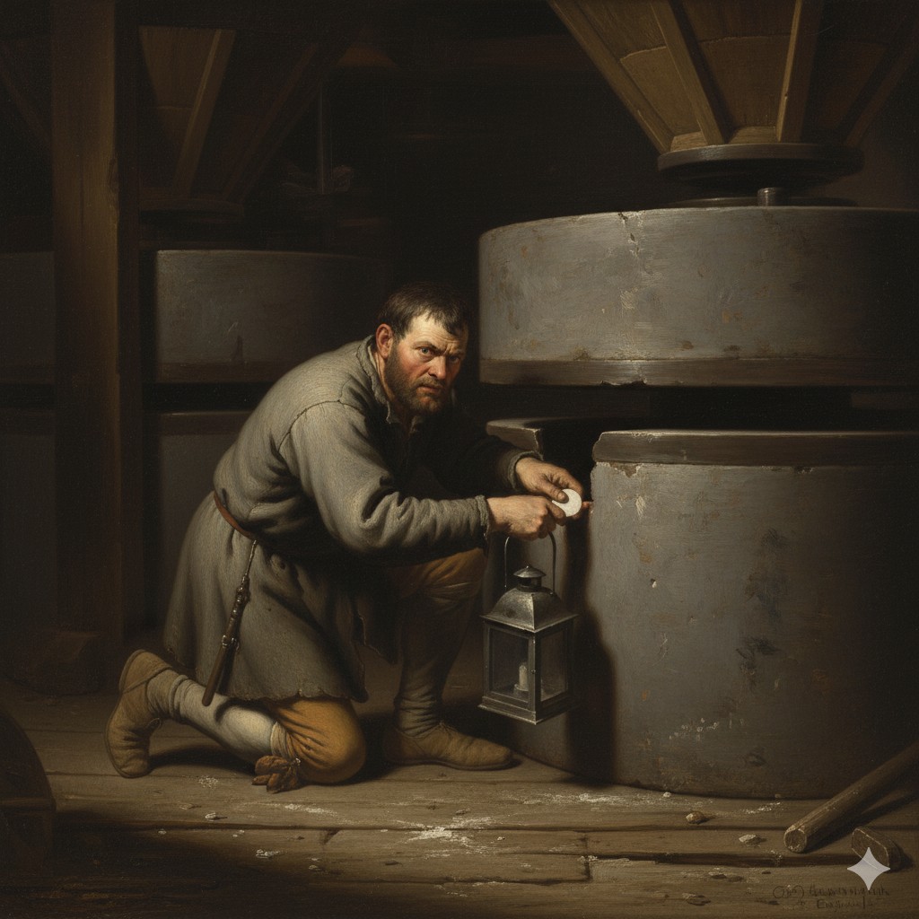 El plan del molinero consistía en esconder la Hostia consagrada entre las piedras del molino de su adversario.
