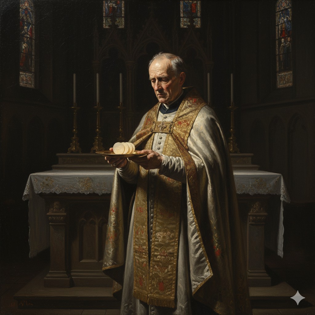 El párroco de la Iglesia de San Pedro y Pablo, después de varios meses, siente crecer la duda sobre la verdad de la transubstanciación y la real presencia del Cuerpo y la Sangre de Cristo en la Hostia consagrada, mostrando ninguna devoción hacia el Santísimo Sacramento.