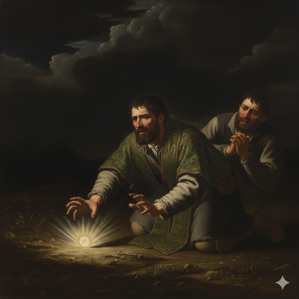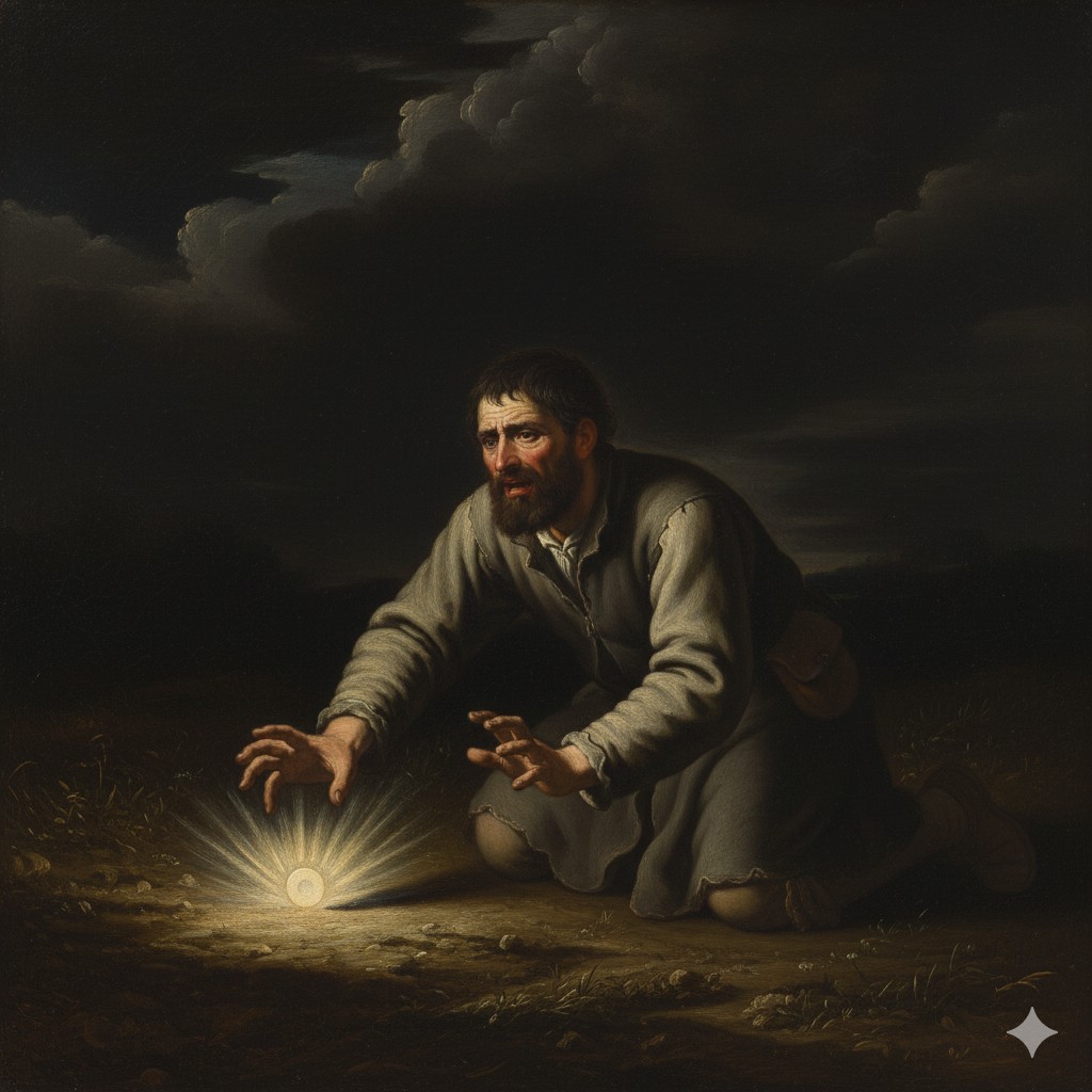 Un día, distraído por su rebaño, el campesino movió bruscamente el bastón, provocando que la Hostia cayera a tierra. Profundamente dolido, intentó recogerla, pero todo esfuerzo fue inútil; la Partícula no se dejaba levantar del suelo.