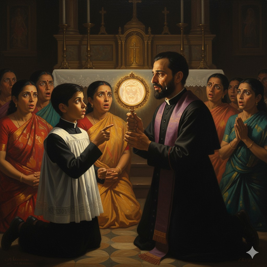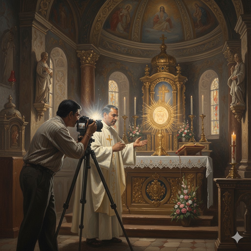 Antes de partir para celebrar misa en una parroquia vecina, el Padre Karoor hace llamar urgentemente a un fotógrafo para que tome fotos de la Hostia con el rostro humano. Dos horas después, las fotos reveladas muestran el rostro, que aparece cada vez más nítido en cada toma.