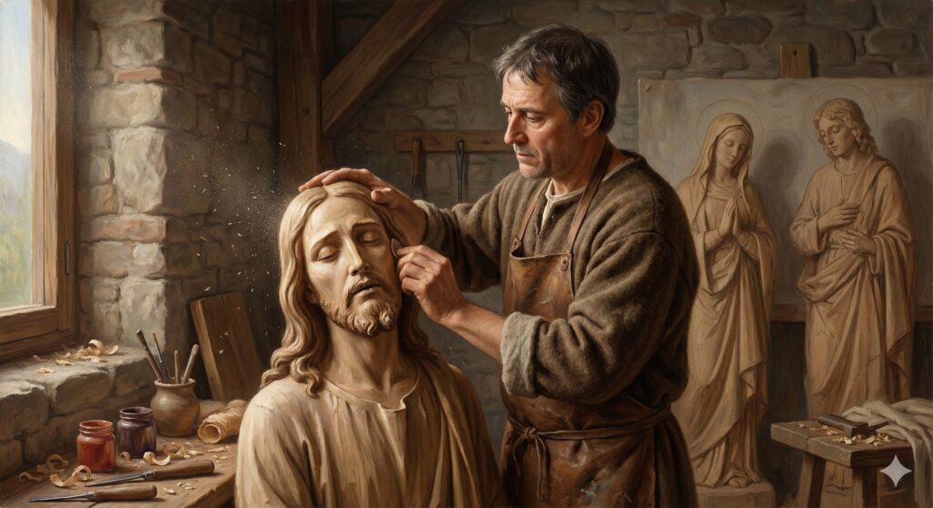 En el año 1251, un artista talla en madera un grupo escultórico que representa el “Descendimiento de la Cruz”. La obra incluye a Jesús, la Virgen María, José de Arimatea, Nicodemo, San Juan y los dos ladrones, logrando una expresividad capaz de suscitar profundas emociones.