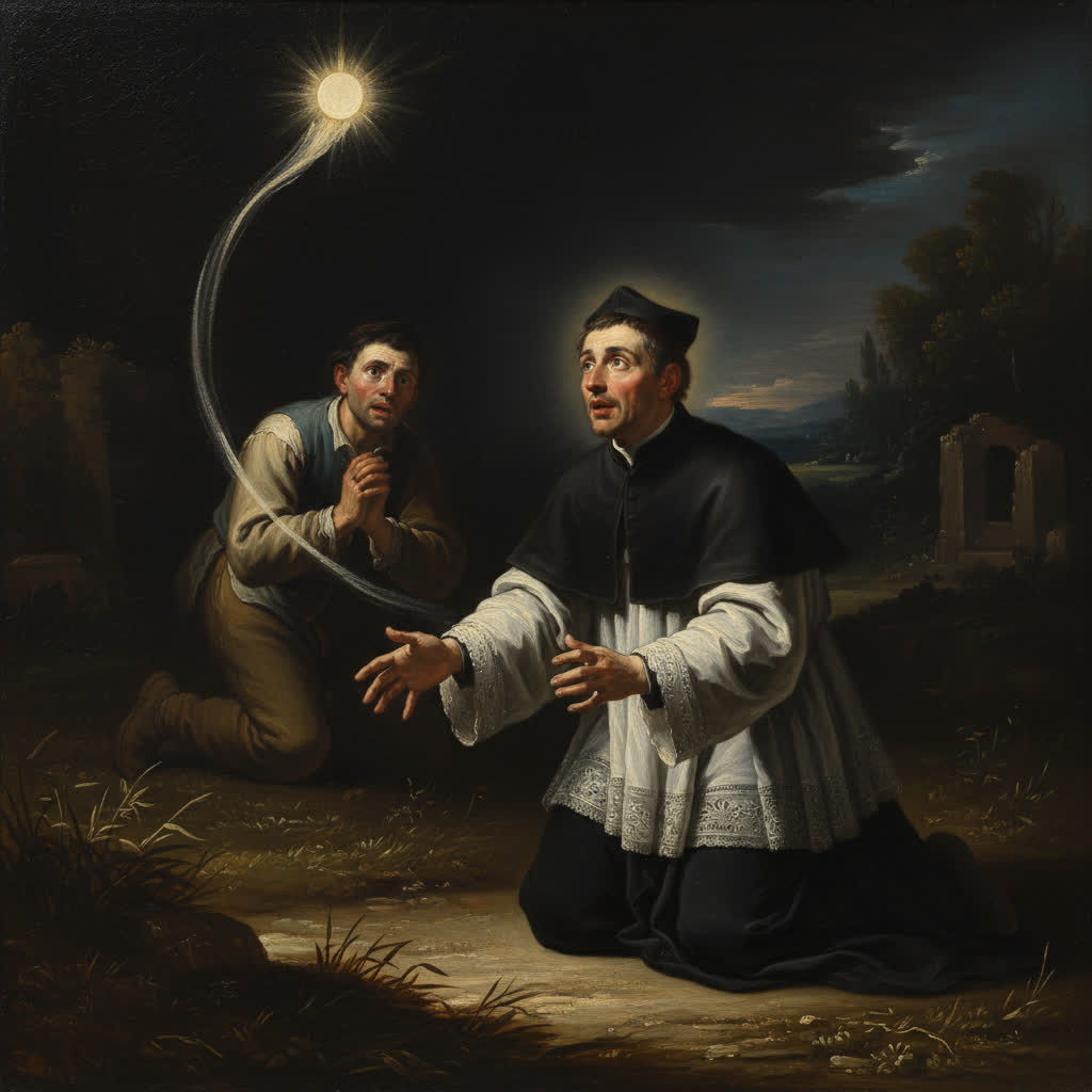 Mientras se dirigía a su casa, el campesino sintió remordimiento y decidió devolver la Partícula. En ese momento, la Hostia se deslizó de sus manos y comenzó a elevarse sola en el aire. Incapaz de recuperarla, el hombre corrió asustado a informar al párroco.