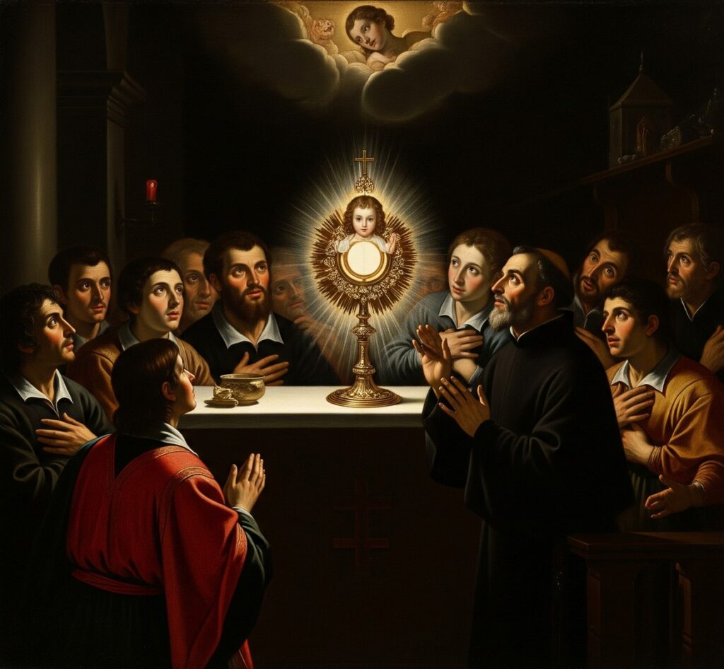 La primera aparición del Divino Niño en el Santísimo Sacramento ocurrió la noche del 2 de junio de 1649 , durante la oración de las vísperas y la exposición solemne en honor a la fiesta del Corpus Domini.
