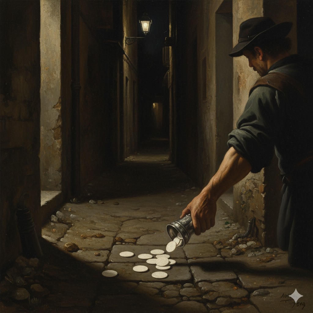 Inmediatamente después de salir de la iglesia, y con la intención de quedarse solo con los objetos de valor, los ladrones arrojaron las Hostias consagradas, vaciando el píxide en un callejón sucio.