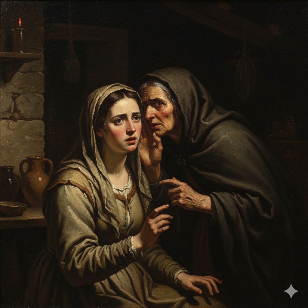 Una hechicera, con la intención de realizar un maleficio, solicita a una mujer que le obtenga una Hostia consagrada.