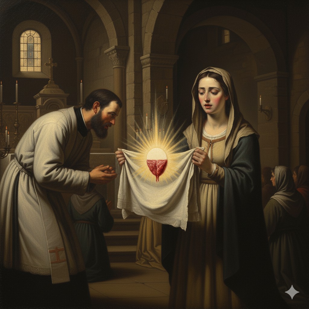 La historia comenzó con un acto de sacrilegio: una hechicera solicitó a una mujer laica que le consiguiera una Hostia consagrada para usarla en un maleficio. La mujer accedió y, durante la Comunión, logró tomar la Partícula y esconderla en un pañuelo de lino.