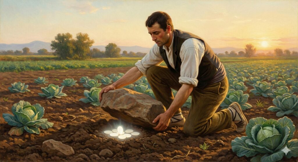 Dos días después del robo, las Sagradas Partículas son encontradas escondidas bajo una piedra en un pequeño huerto o campo de cultivo en las afueras de la ciudad de Silla.