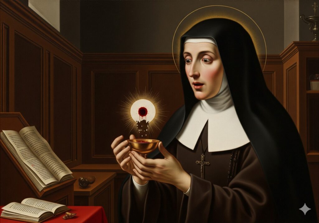La Hostia cae y es puesta en el vasculum