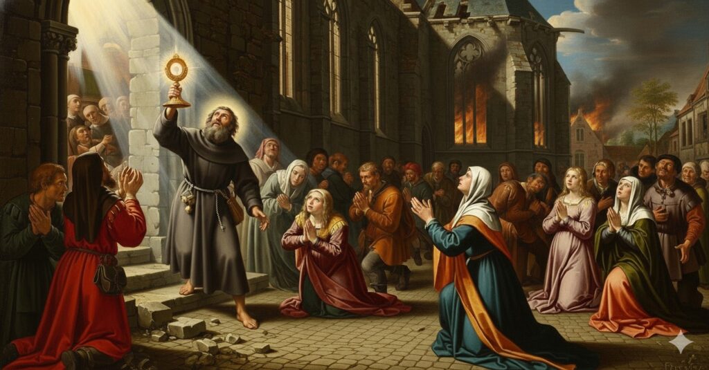 Mientras las llamas se extendían rápidamente por el interior de la iglesia, el anciano párroco, Jan Hocaerts, solicitó auxilio a los vecinos. Un grupo de fieles, encabezados por Jan Baloys, acudió y tomó la heroica decisión de rescatar el Santísimo Sacramento.