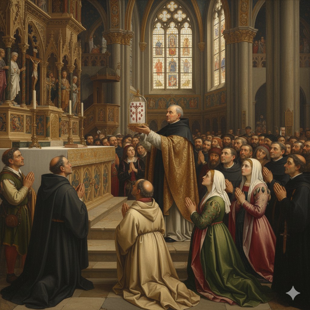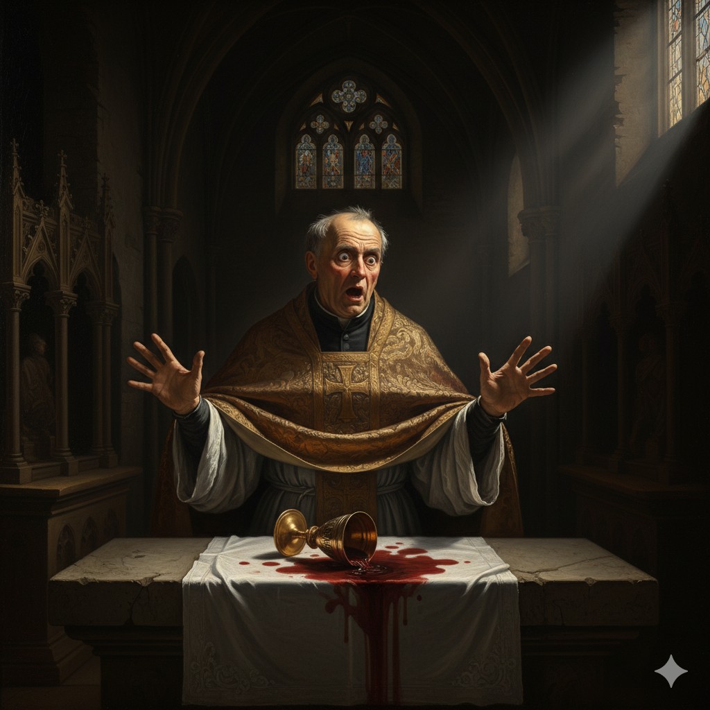 Durante la celebración de la Santa Misa, el sacerdote Heinrich Otto derramó accidentalmente el cáliz, vertiendo el vino consagrado sobre el corporal (el paño del altar).