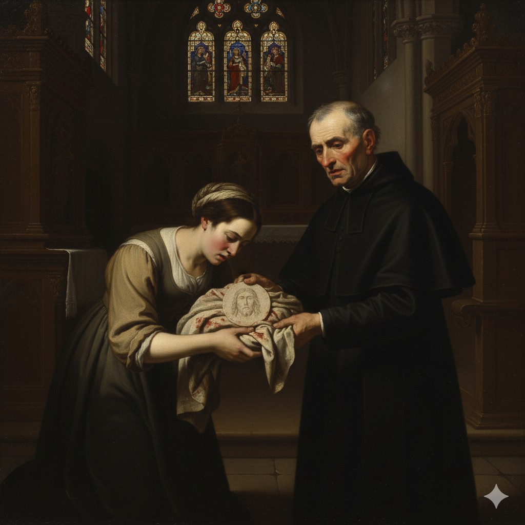 Llena de confusión tras el suceso , la mujer buscó al canónigo Anelon, quien recibió y conservó la Hostia milagrosa.